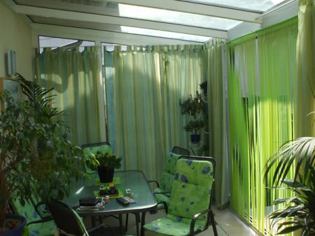 T8, Alumínium szerkezetű télikert tolóajtóval, üvegtetővel, függönnyel