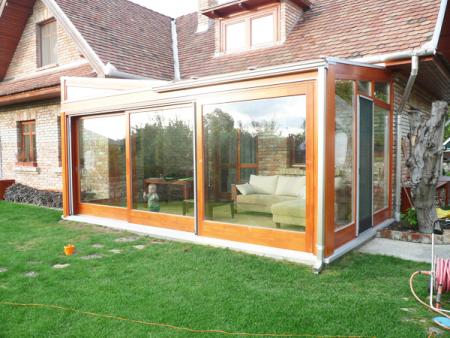 T30, Faszerkezetű télikert emelő toló erkélyajtóval és üvegfedéssel