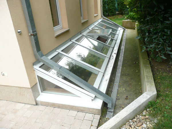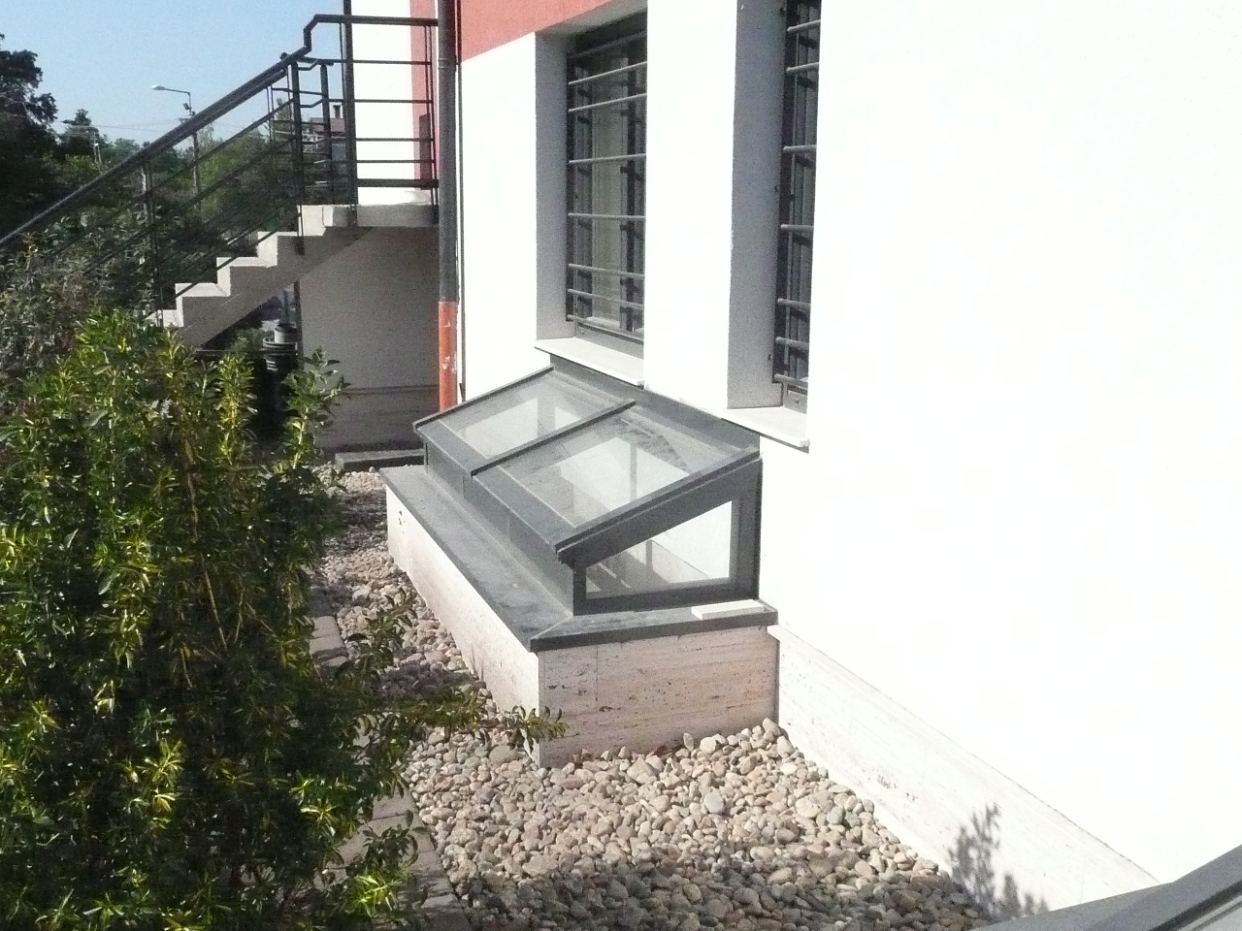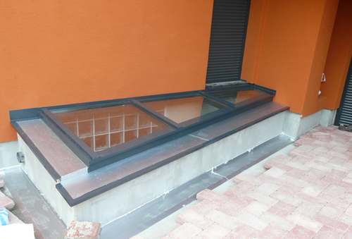 Akna bevilágító - angolakna alumínium szerkezetre építve
