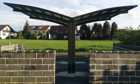 Kocsibeálló dupla íves polikarbonát fedéssel két autó részére