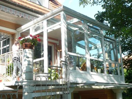 T34, Műanyag szerkezetű télikert üvegtetővel emeleti teraszon