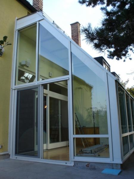T77, Meredek tetős télikert fa - alumínium szerkezettel